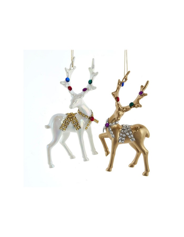 Set 2 ornamente reni alb și aiuri cu cristale colorate 15cm