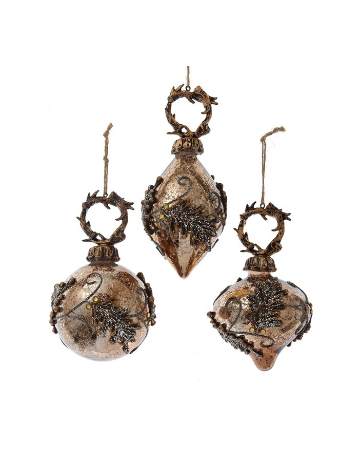 Set 3 globuri de sticlă pădure 17cm