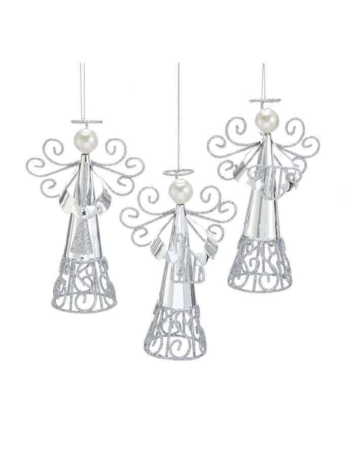 Set 3 ornamente îngerași cu perle 11cm